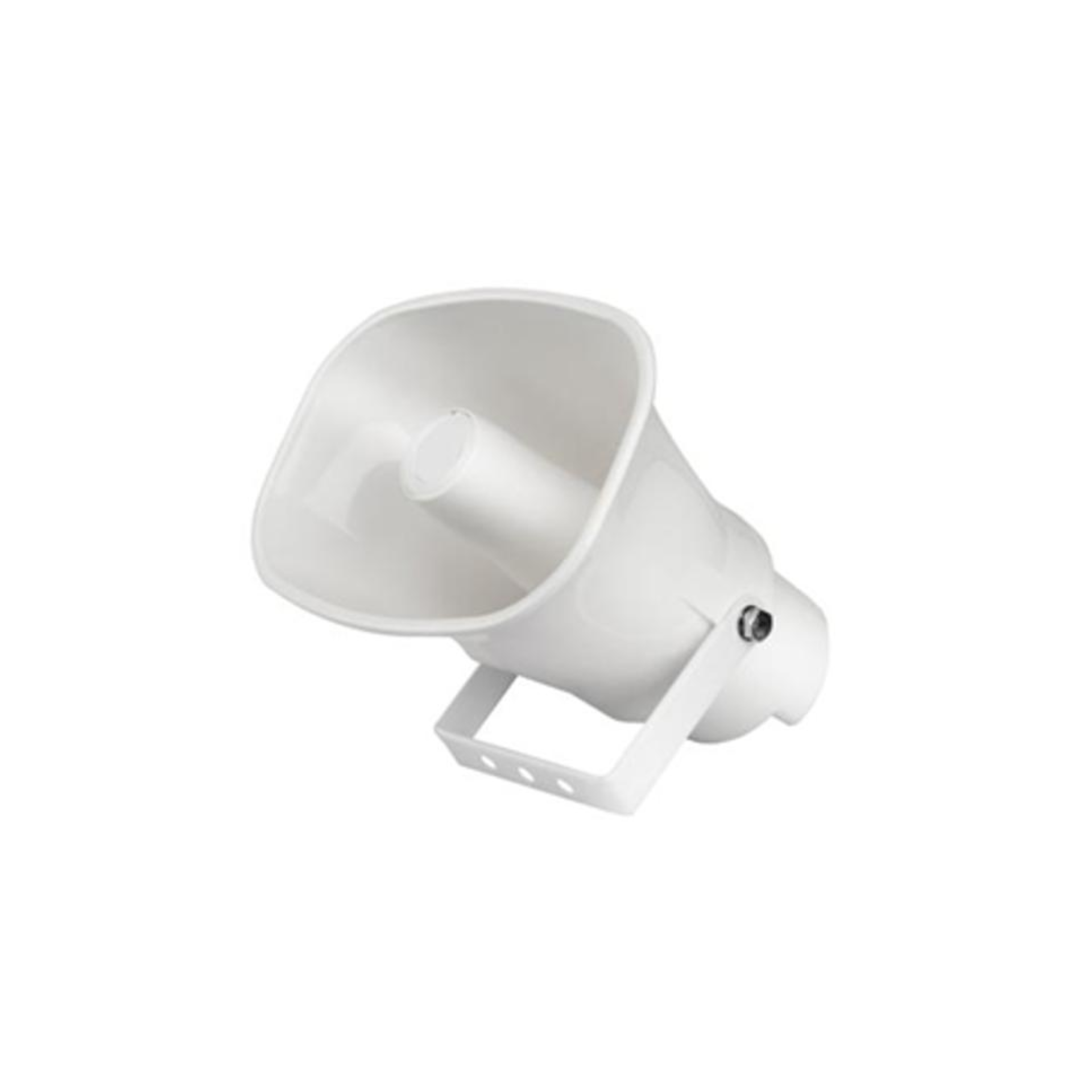 30W analog horn-type speaker, 2" speaker unit (mid-to-high, dome diaphragm), selectable power 2.5W/5W/7.5W/15W/30W (70V) or 5W/10W/15W/30W (100V), sensitivity 108 dB ± 3 dB at 1 m/1W, maximum sound pressure 120 dB SPL, frequency response 250 Hz–8 kHz, horizontal coverage 75° / vertical coverage 90°, ABS housing, IP65 protection rating, dimensions 240 × 220 × 165 mm, weight ≈ 1.48 kg, operating temperature –20 °C to 55 °C.