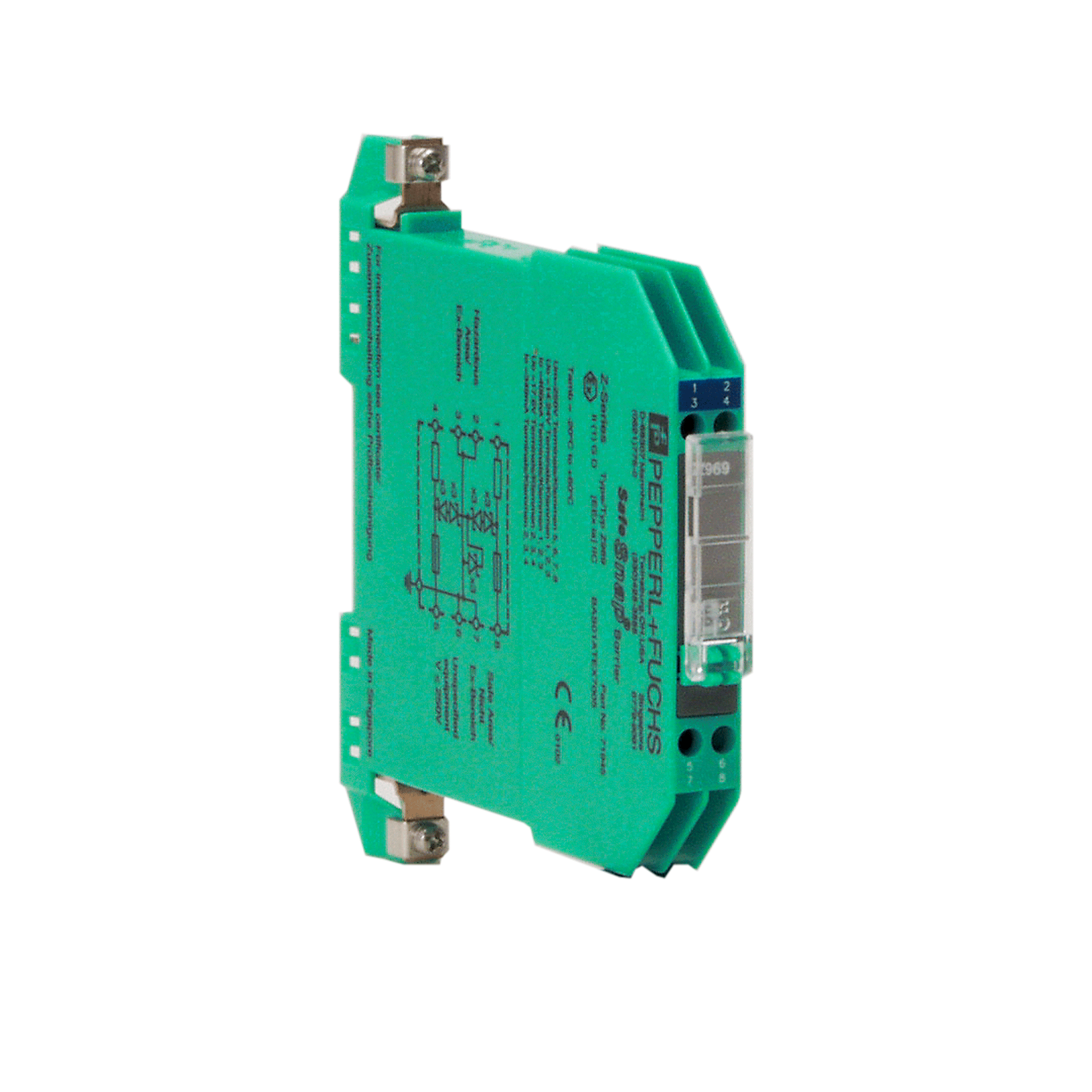 Aislador galvánico para sensores y pulsadores convencionales de seguridad intrínseca “EEX ia”. El aislador galvánico se debe montar en una zona segura fuera de la zona explosiva.